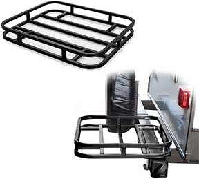 Offers a 500 lb. max carrying capacity and fits 2" hitch receivers. This over sized hitch basket features a large 24" x 60" deck with 6" high sides and a riser hitch bar that raises the carrier 2-1/2" for greater ground clearance.