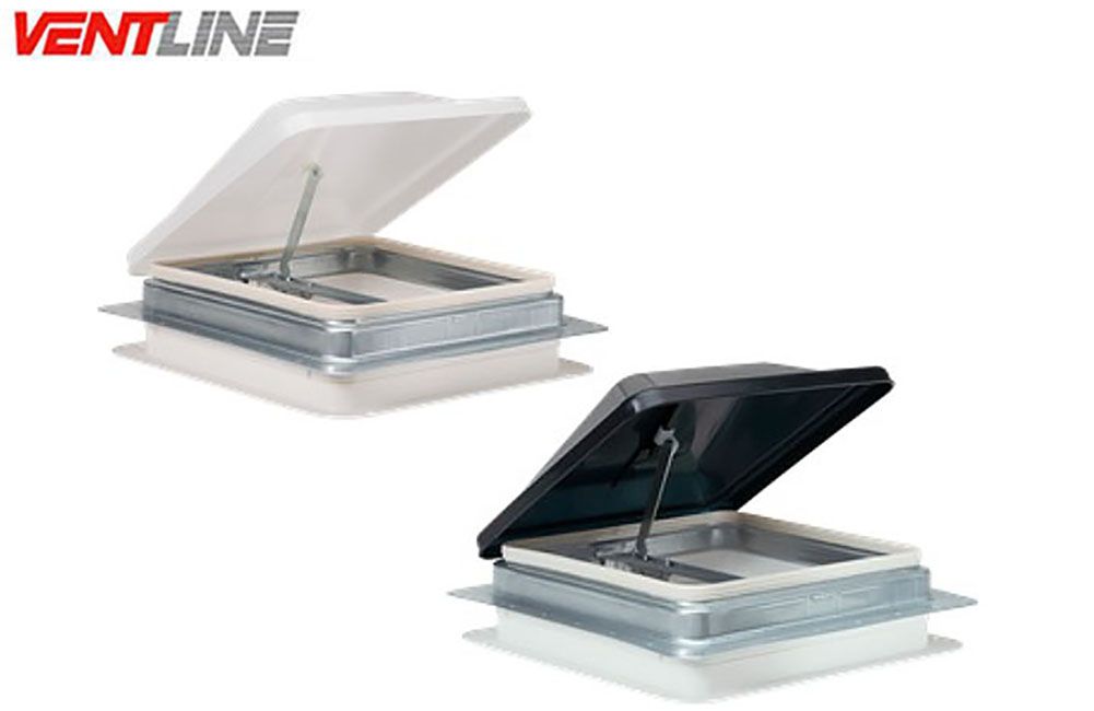 14-1/4" x 14-1/4" Rough opening. Extra strong galvanized steel roof flanges. Screw-in or clamp-in option. Telescopic garnish for easy trim out (sold separately). Dome color and style options- New Aerodynamic Polypropylene, white or smoke.